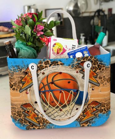 Stylish Basketball Tote Bag – Sports Design With Leopard Print & Lightning Accents – Perfect For Fans & Everyday Use!