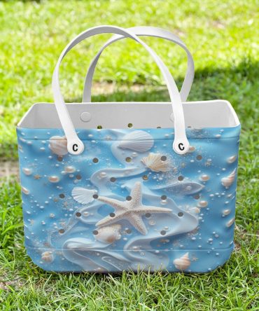Stylish Beach Tote Bag – Ocean Design With Starfish & Shells – Perfect For Summer Getaways