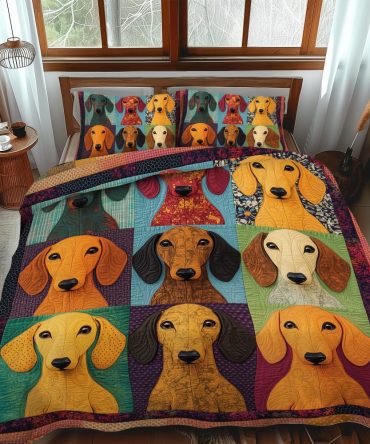 Adorable Dachshund 3-Piece Quilted Bedding Set