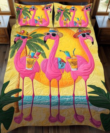 Adorable Flamingo 3-Piece Quilted Bedding Set