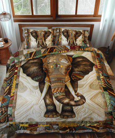 African Elephant 3-Piece Quilted Bedding Set