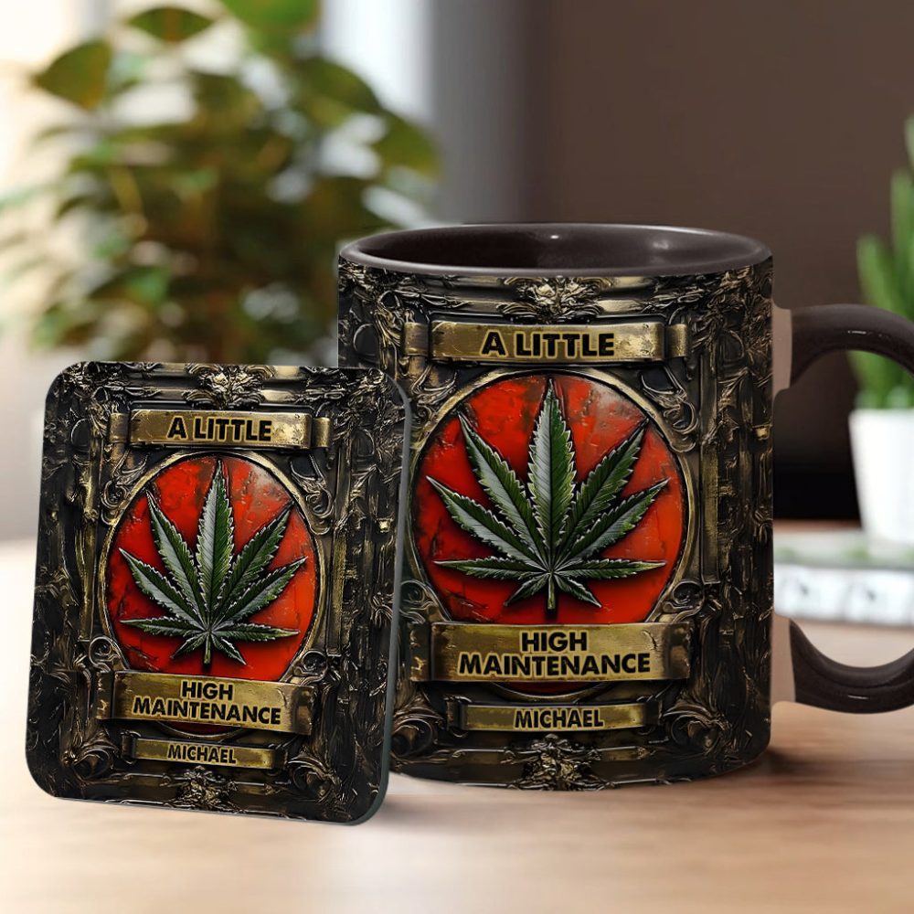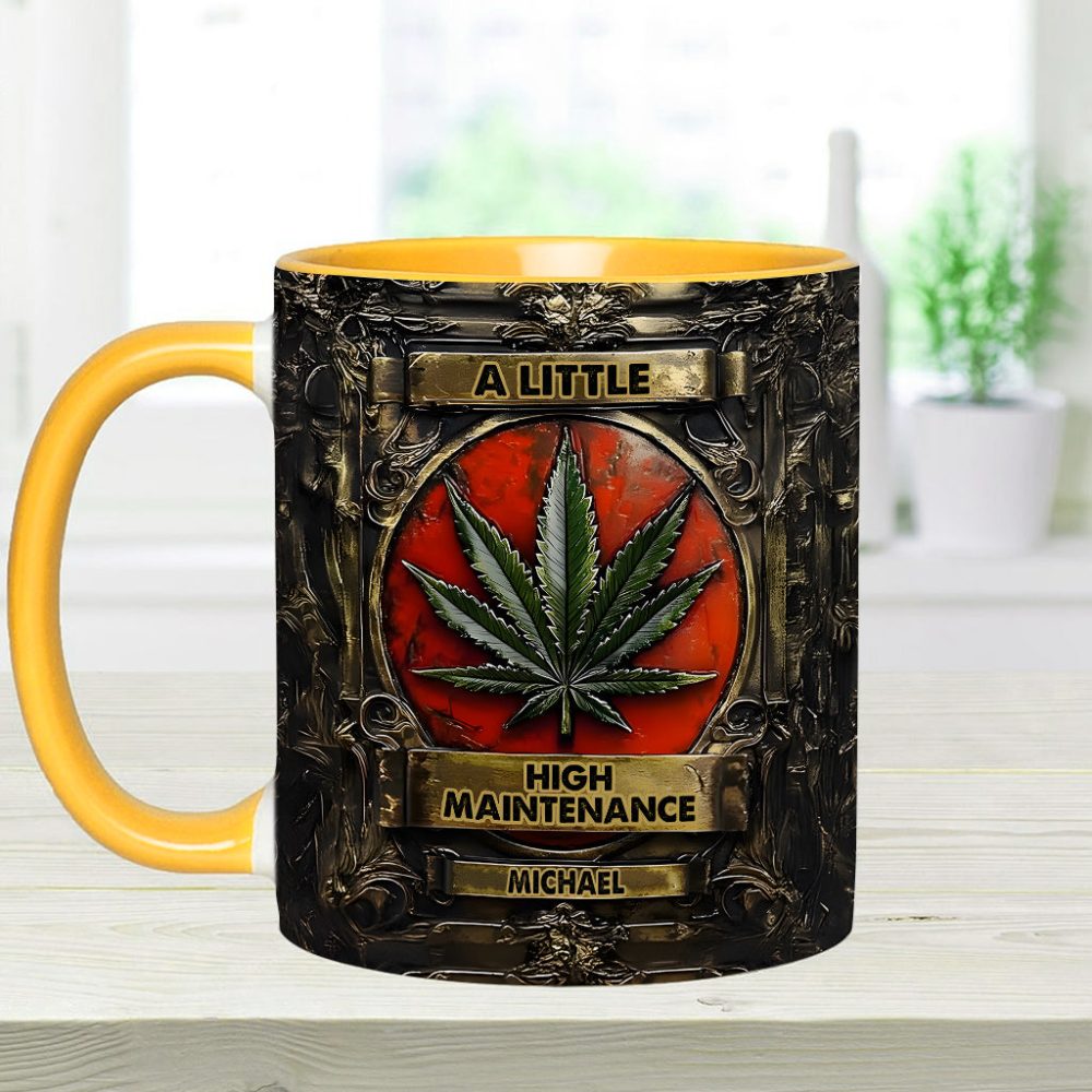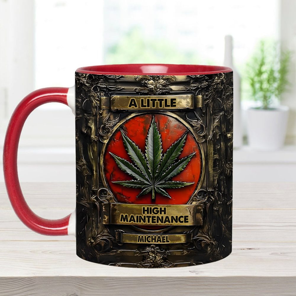 - High quality ceramic mug with two-tone rim, interior, & handle