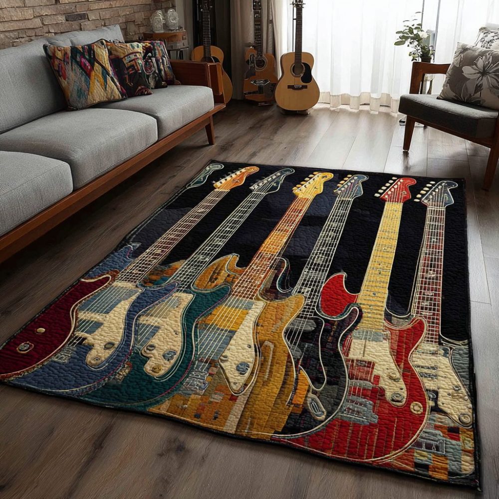 acoustic guitar rug,guitar illustration rug,music room area rug,non-slip rug,easy-care rug,low-profile floor rug,vintage guitar decor,home studio rug