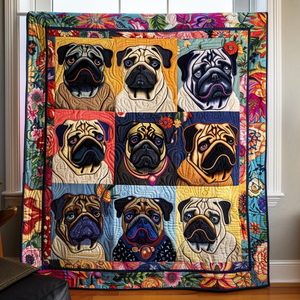 Adorable Baby Pugs Quilted Blanket