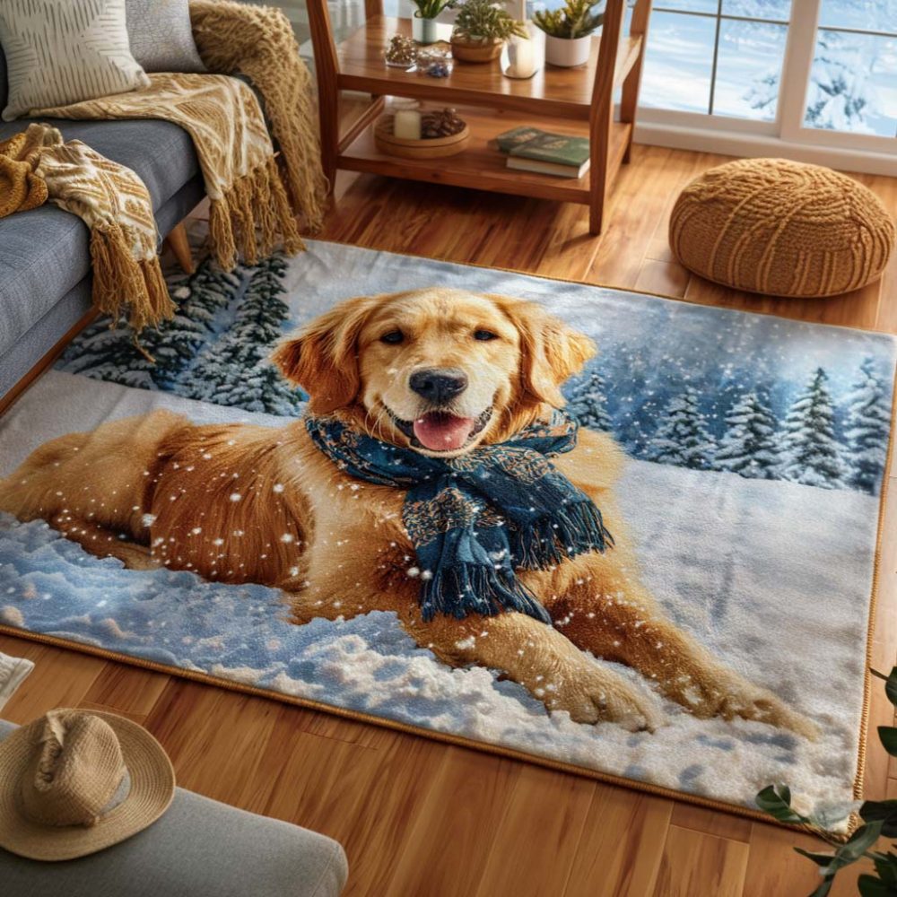 festive pup rug,christmas puppy rug,nursery holiday rug,playroom rug,plush kids rug,non-slip holiday rug,stain resistant area rug