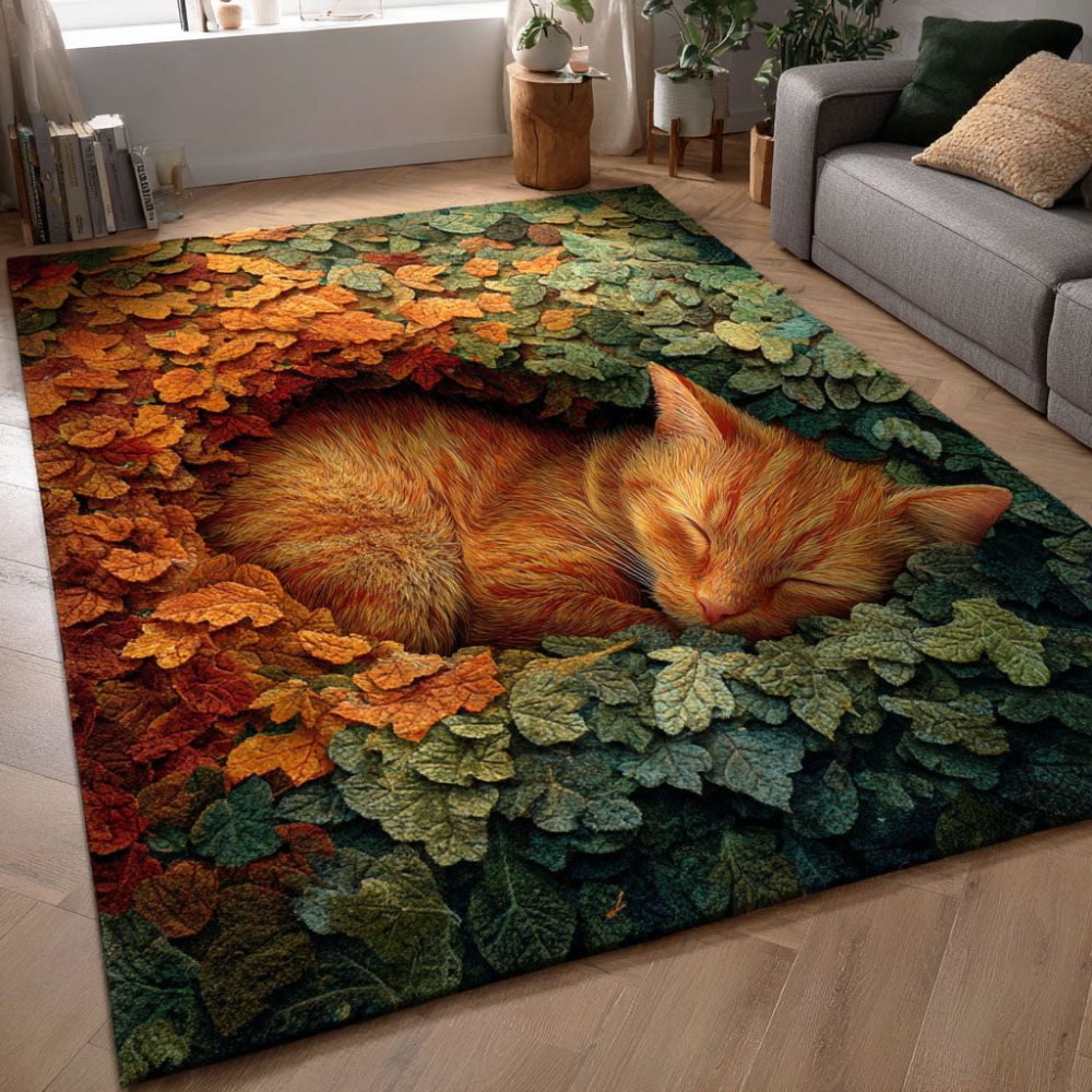 cat rug,sleeping cat rug,animal print rug,children’s rug,nursery rug,pet-friendly rug,soft plush mat,non-slip area rug