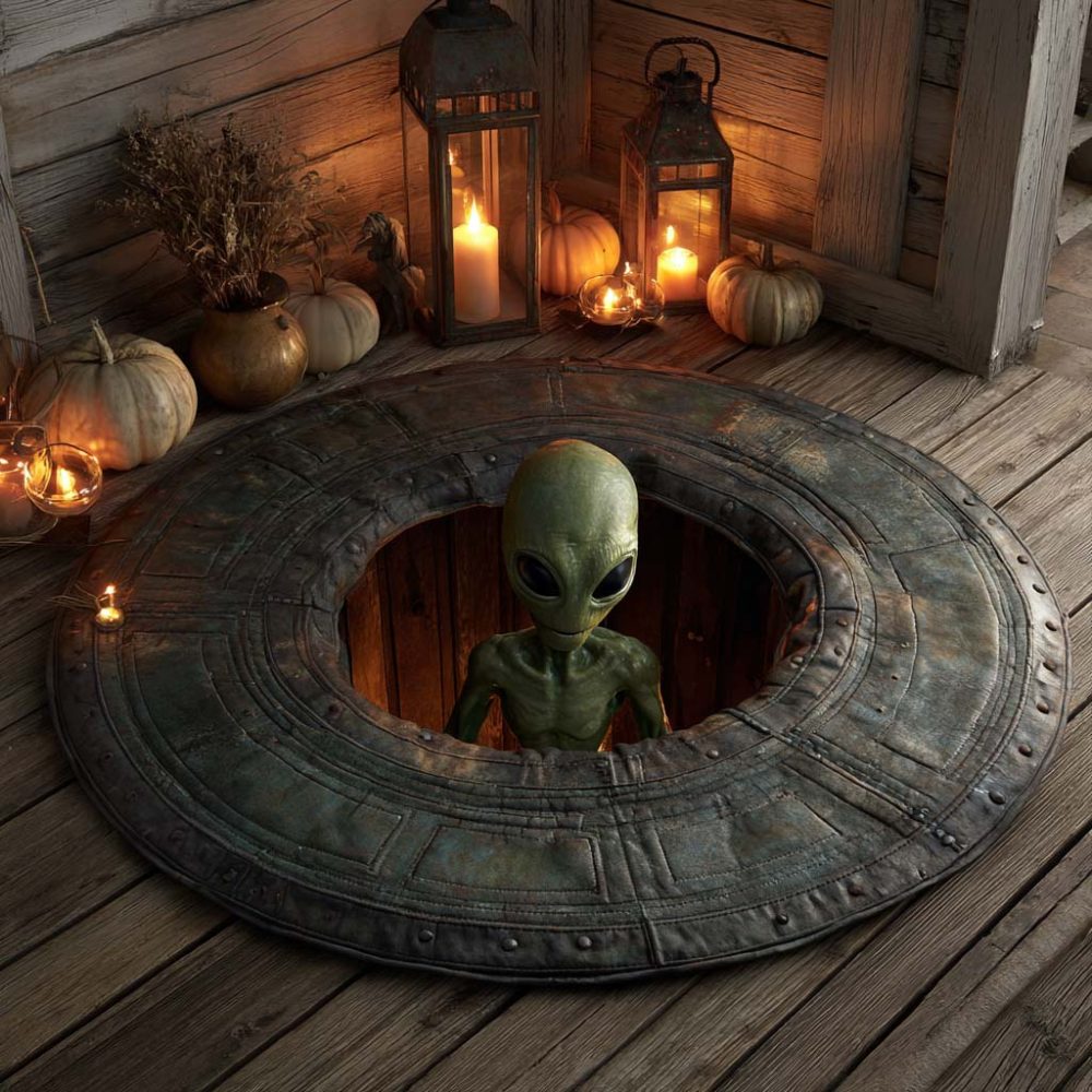 Alien Visitor Quilted Round Mat