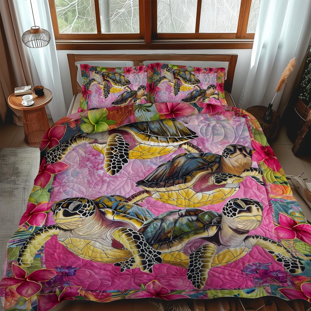 Aloha Turtle Dreams 3-Piece Quilted Bedding Set