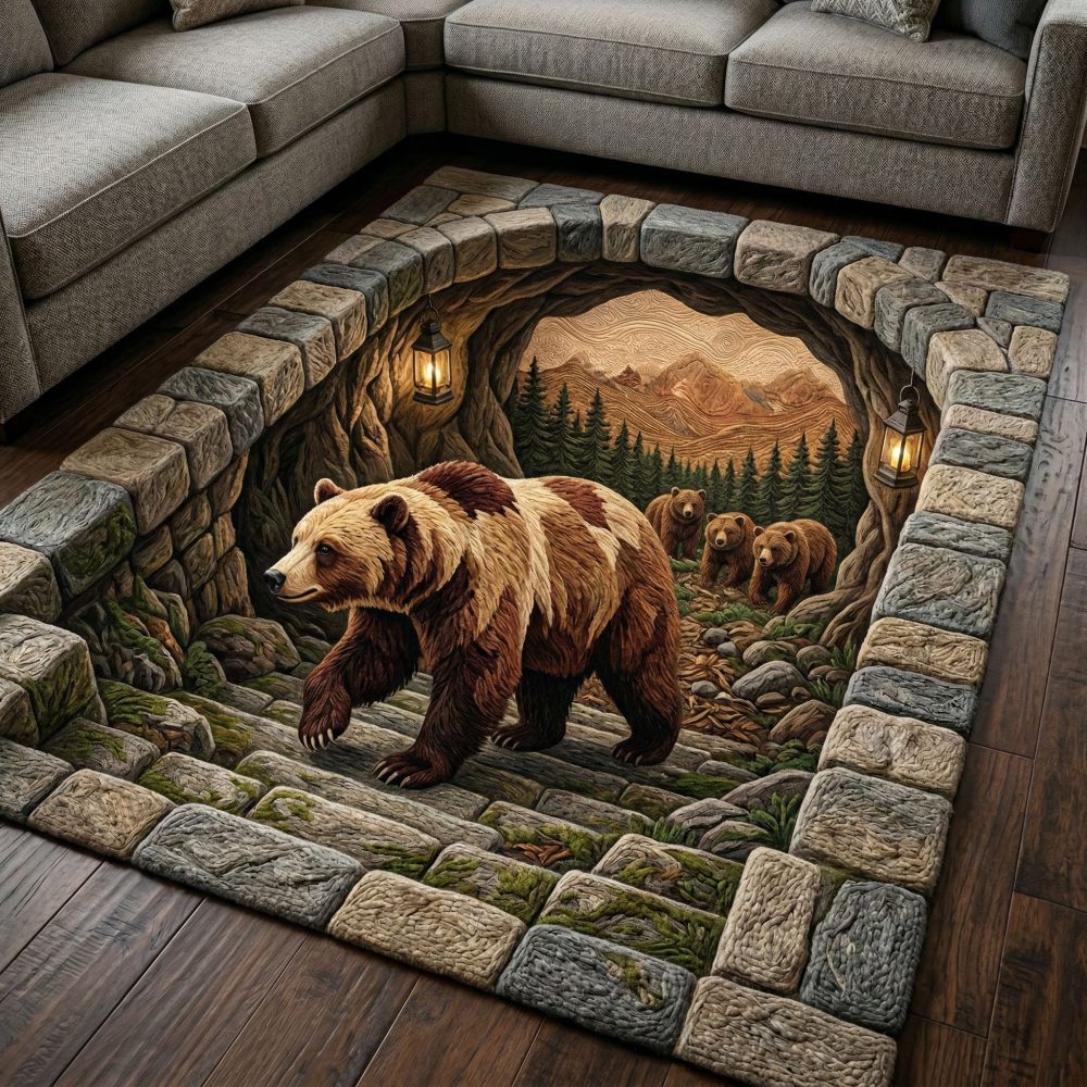 Alpine Bear Lodge Rug — Rustic Mountain Bear Illustration, Plush Durable Area Rug For Cabin, Living Room, Or Nursery, Multiple Sizes