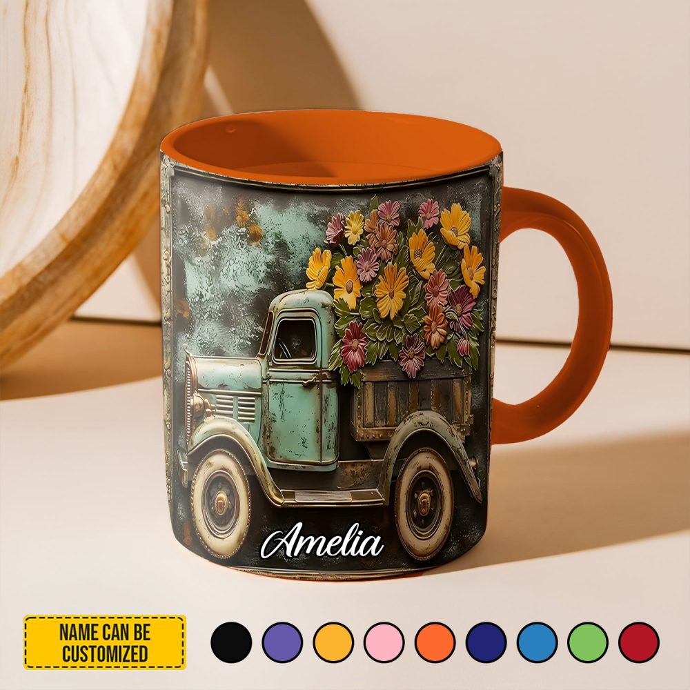 - High quality ceramic mug with two-tone rim, interior, & handle