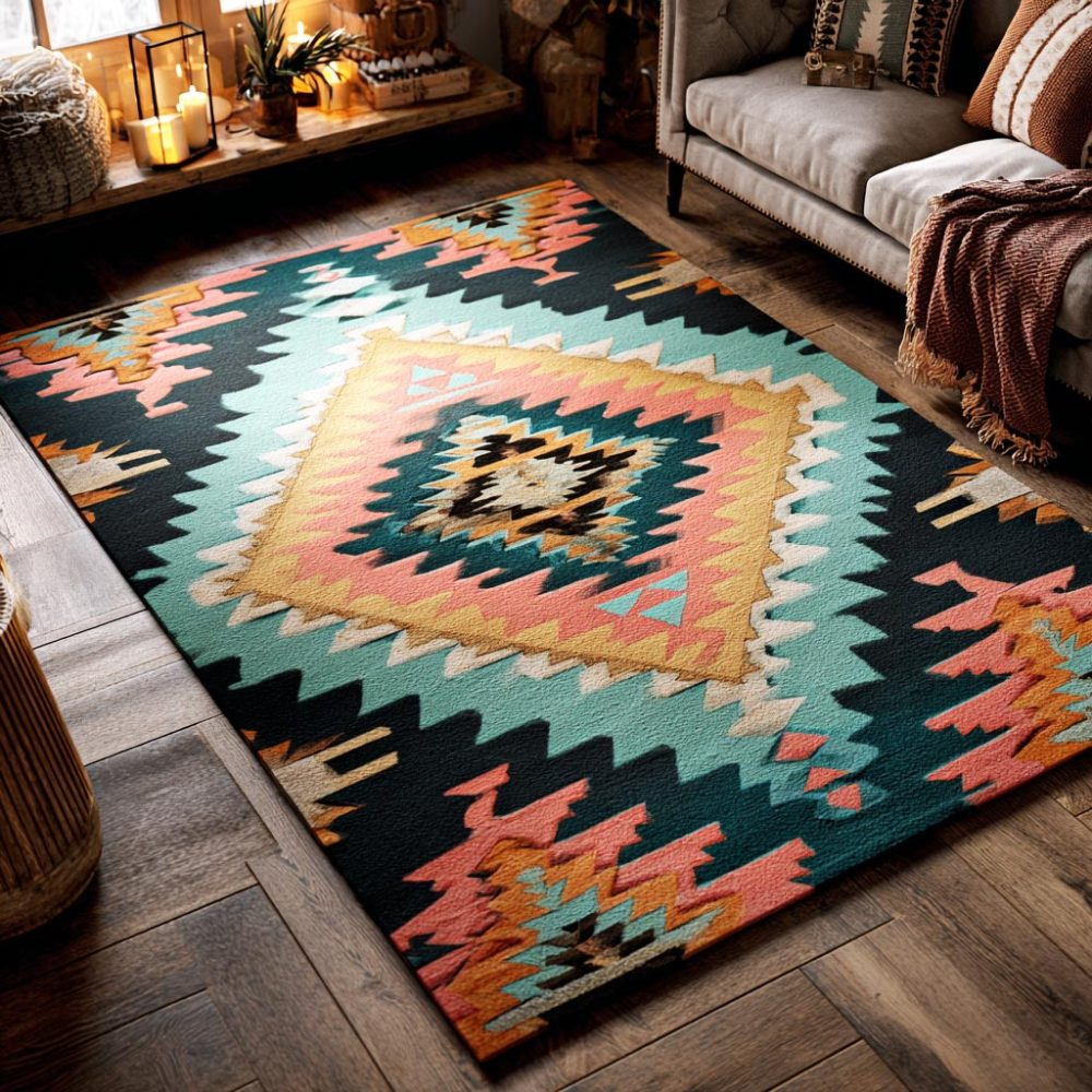 geometric rug,tribal pattern rug,modern area rug,low-pile rug,durable accent rug,hallway runner,office rug,living room rug