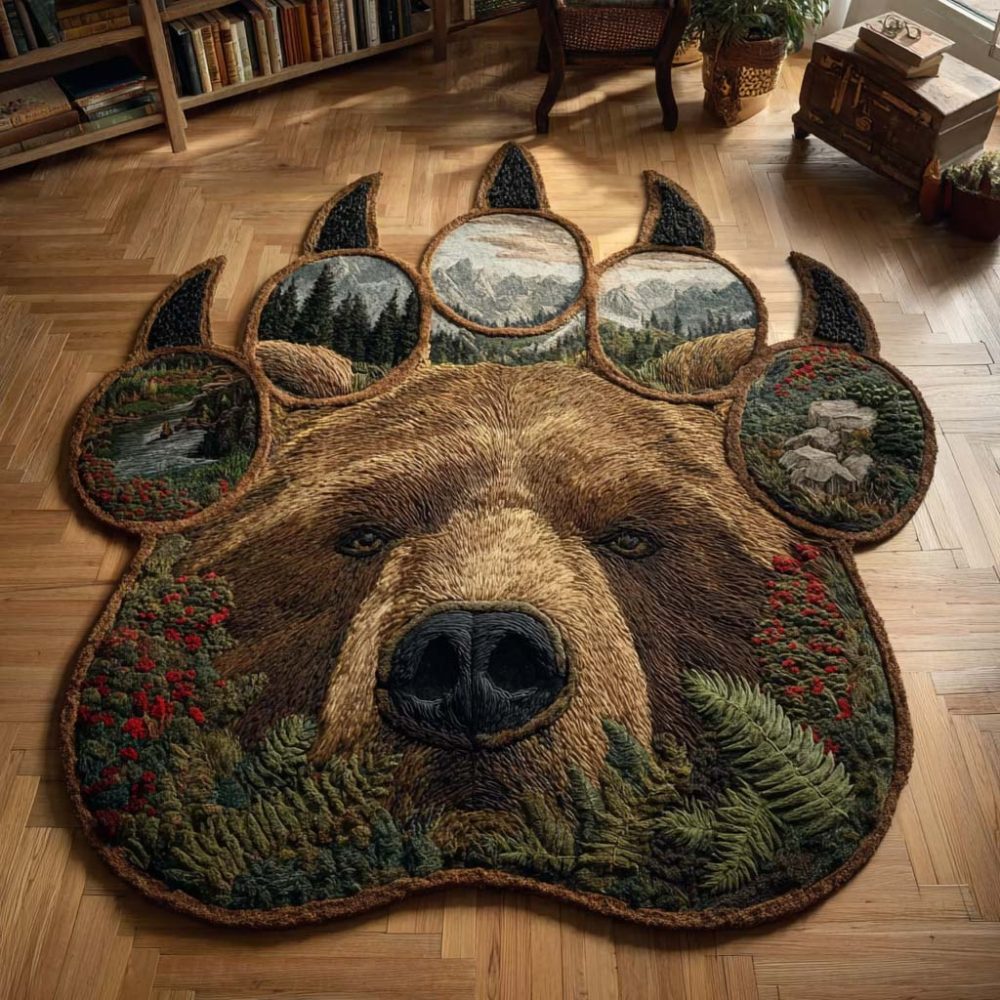 Ancient Bear Custom-Shaped Area Rug – Playful Bear Design, Non-Slip Backing, Soft Durable Accent Rug For Nursery, Kids Room & Cabin