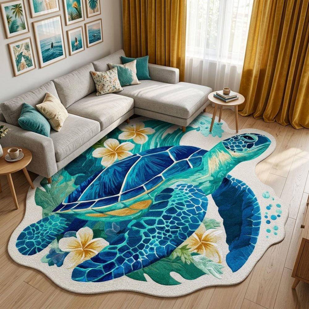 Aqua Journey Custom-Shaped Rug — Serene Seascape Floor Mat, Unique Shape For Entryways, Hallways & Coastal Rooms