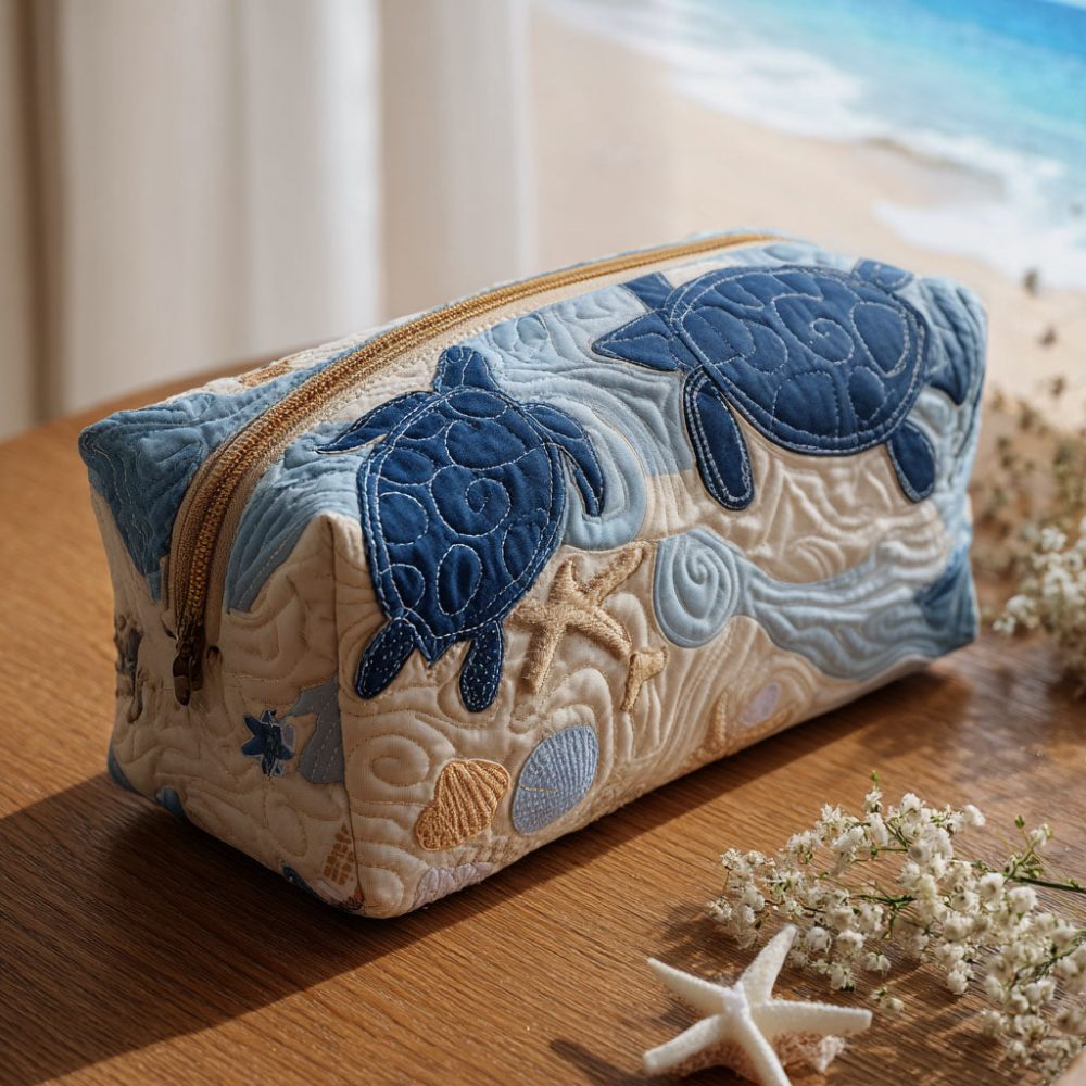 Aqua Shell Quilted Makeup Bag