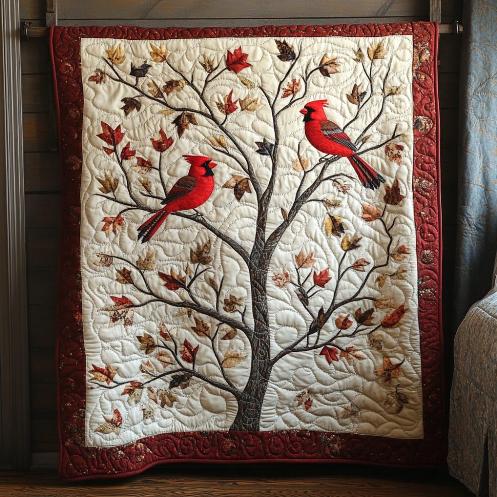 Autumn Cardinal Tree Quilted Blanket