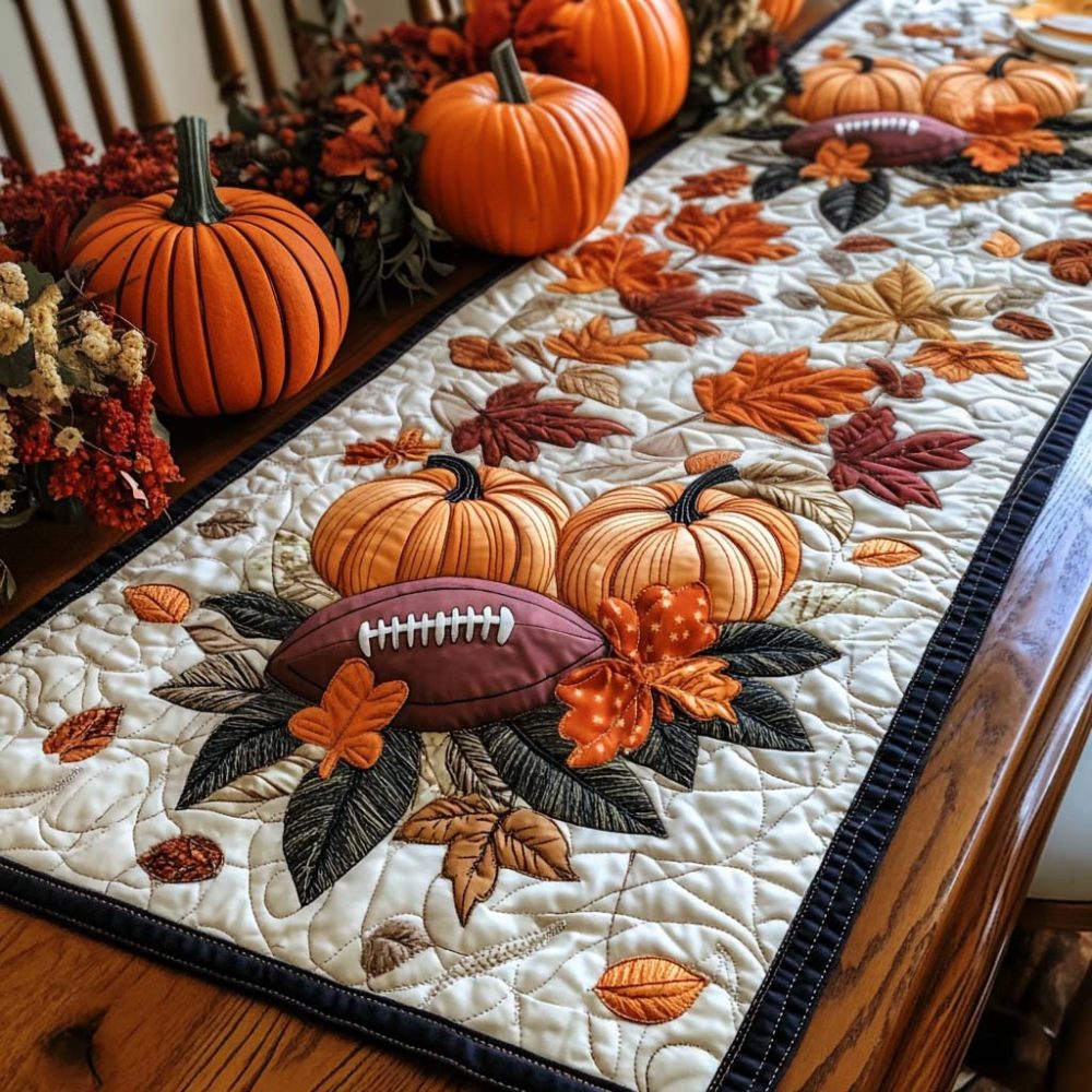 Autumn Football Bliss Quilted Table Runner