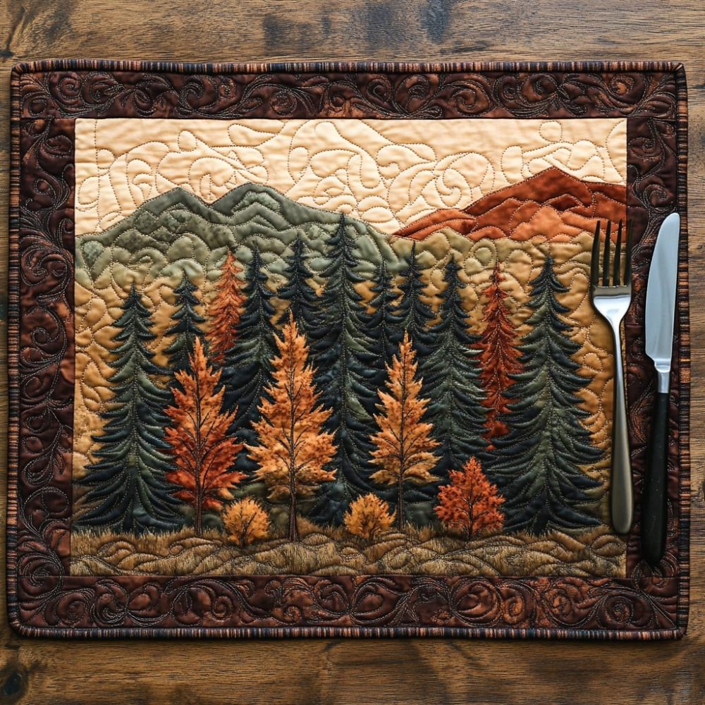 Autumn Forest Rustic Quilted Placemat – Warm Fall Foliage Print, Thick Quilting, Heat-Resistant Cotton-Blend For Thanksgiving Tables