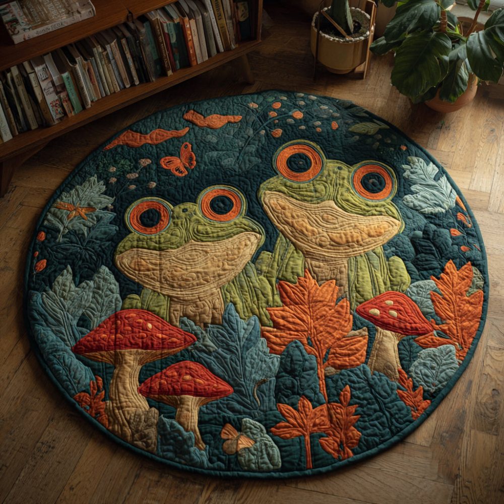 Autumn Frogs Quilted Round Mat