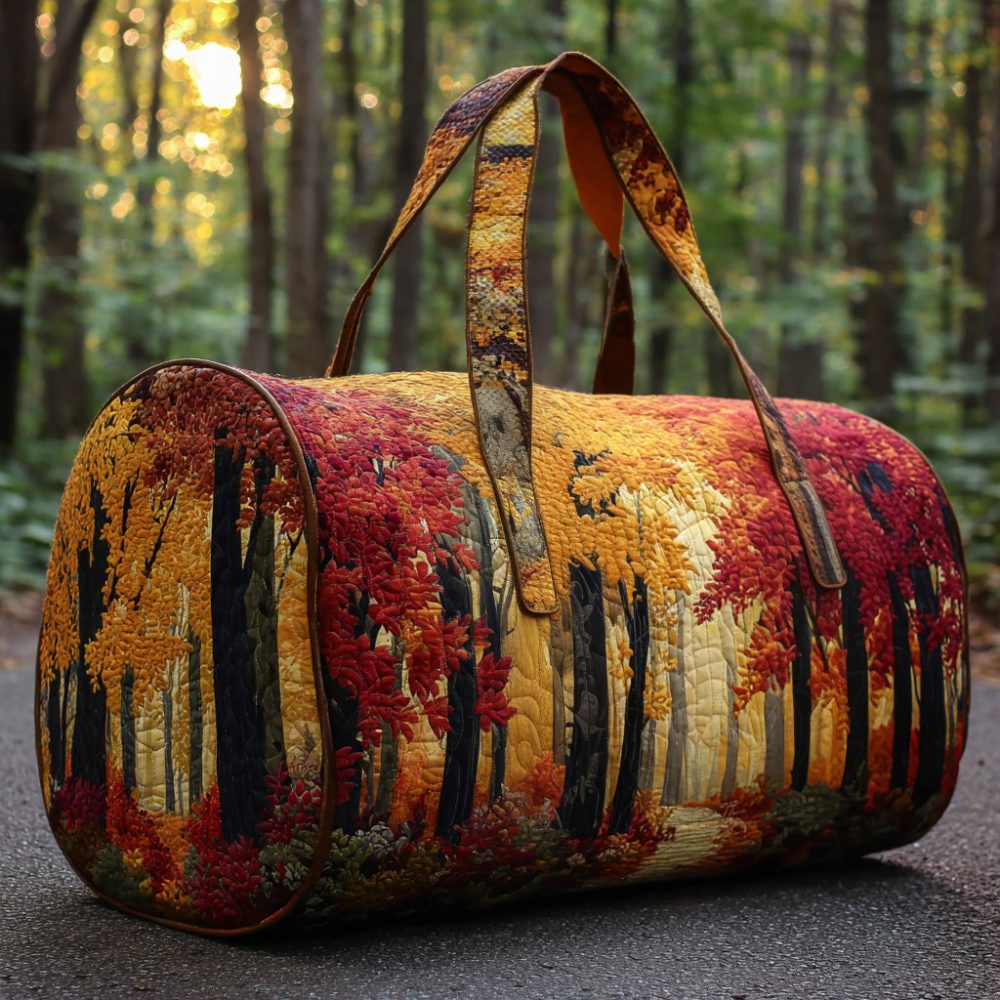 autumn duffle bag, quilted travel bag, floral gym bag, stylish overnight bag, unique carry-on, fall fashion accessory, bohemian bag, seasonal travel gear, trendy weekend bag, chic duffel, travel essentials, women’s bags