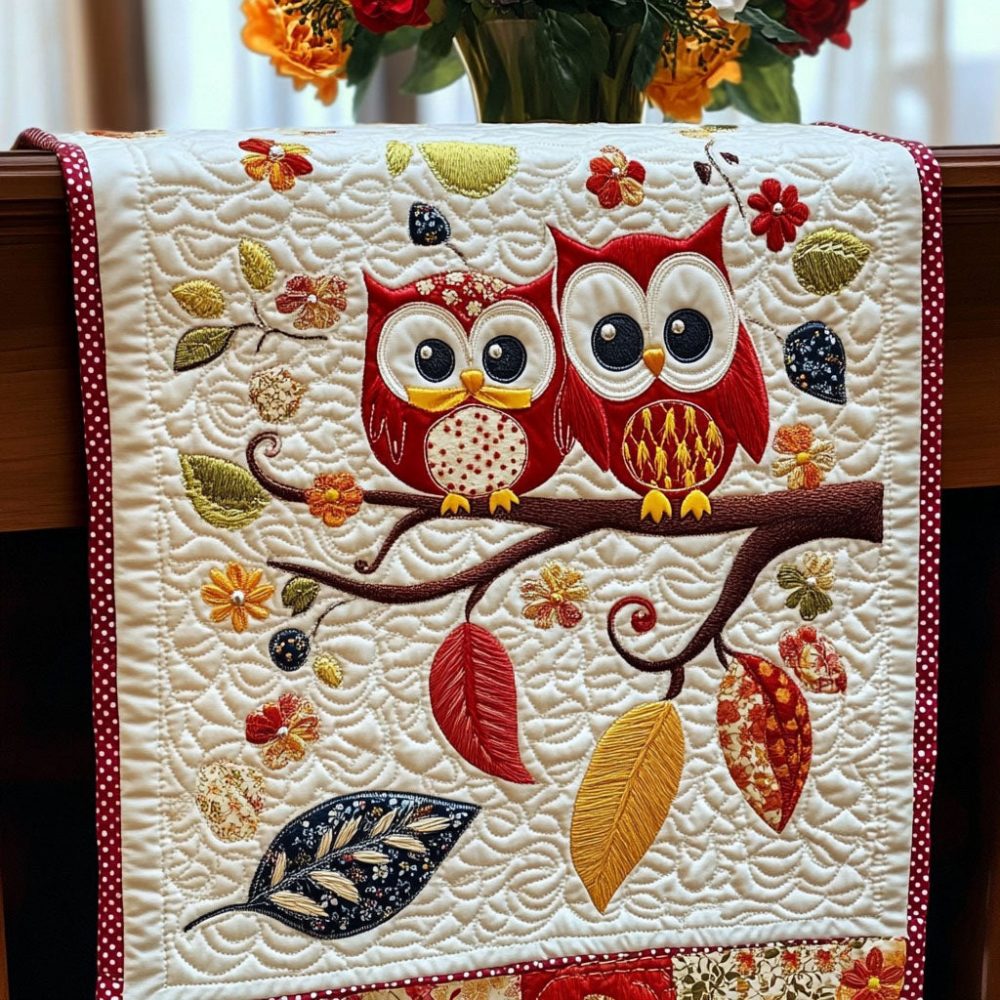 Autumn Love Owls Quilted Table Runner
