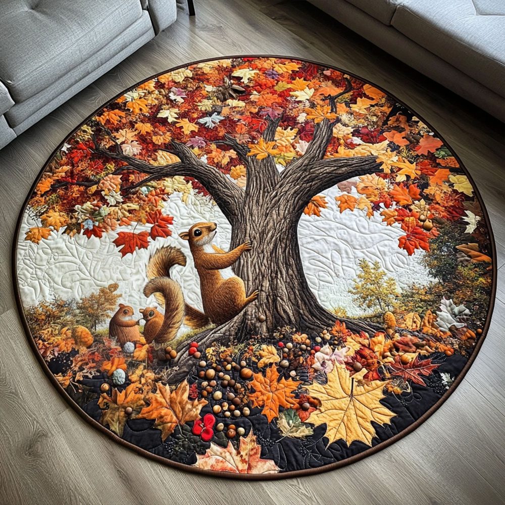 Autumn Nut Hunt Quilted Round Mat