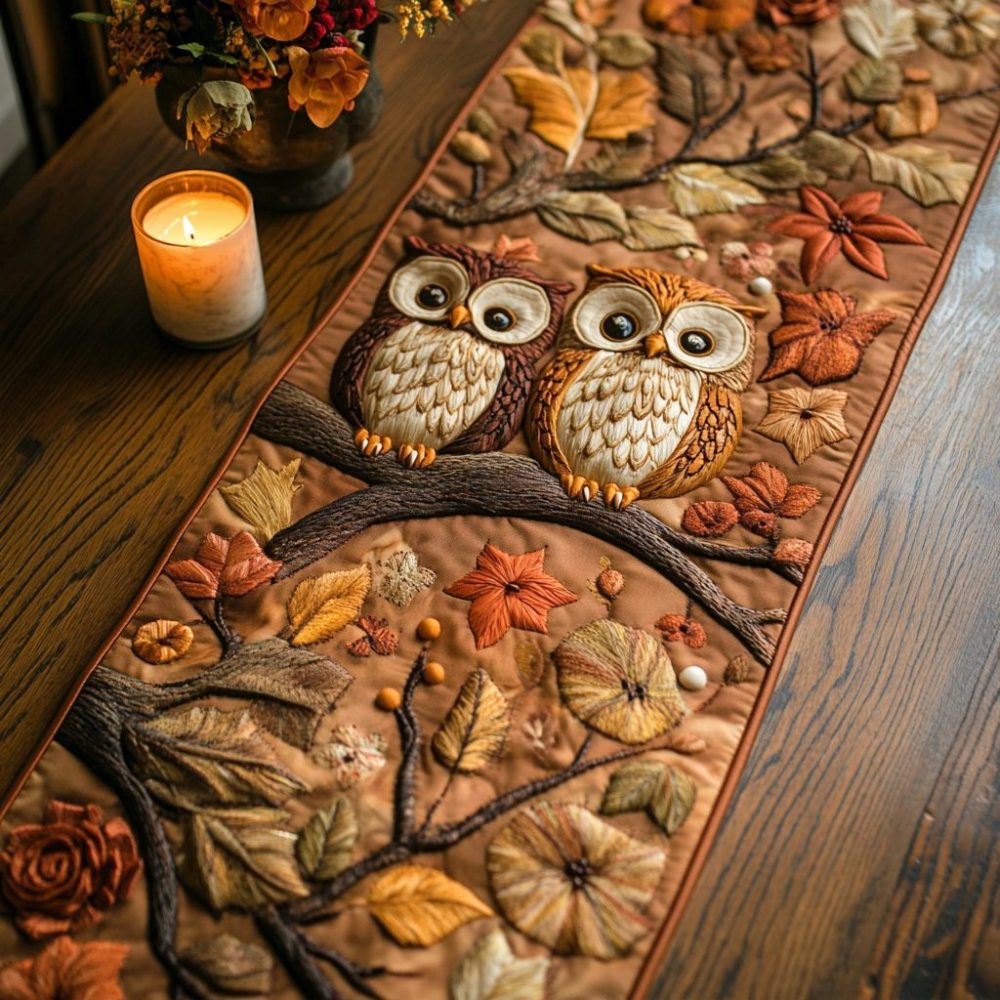 Autumn Owls Quilted Table Runner