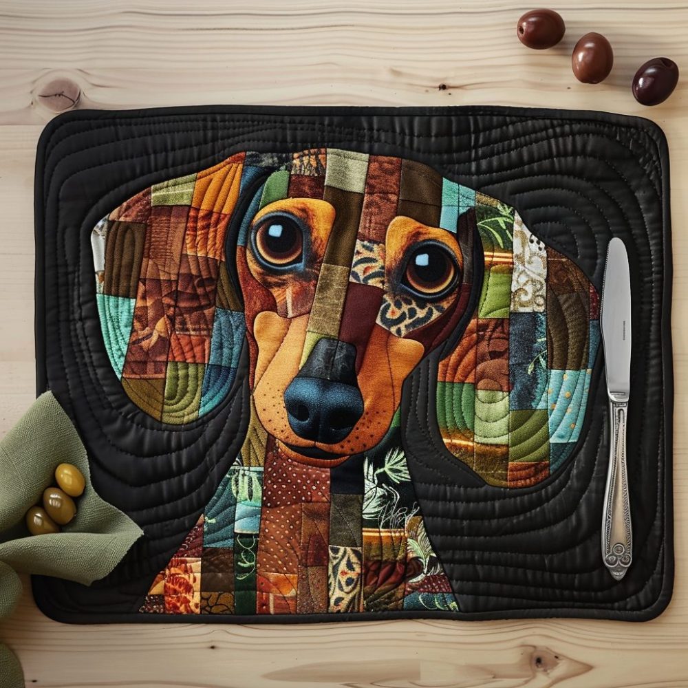 Autumn Patchwork Dachshund Quilted Placemat — Whimsical Fall Dog-Themed Table Mat With Cozy Colors For Seasonal Kitchen Decor