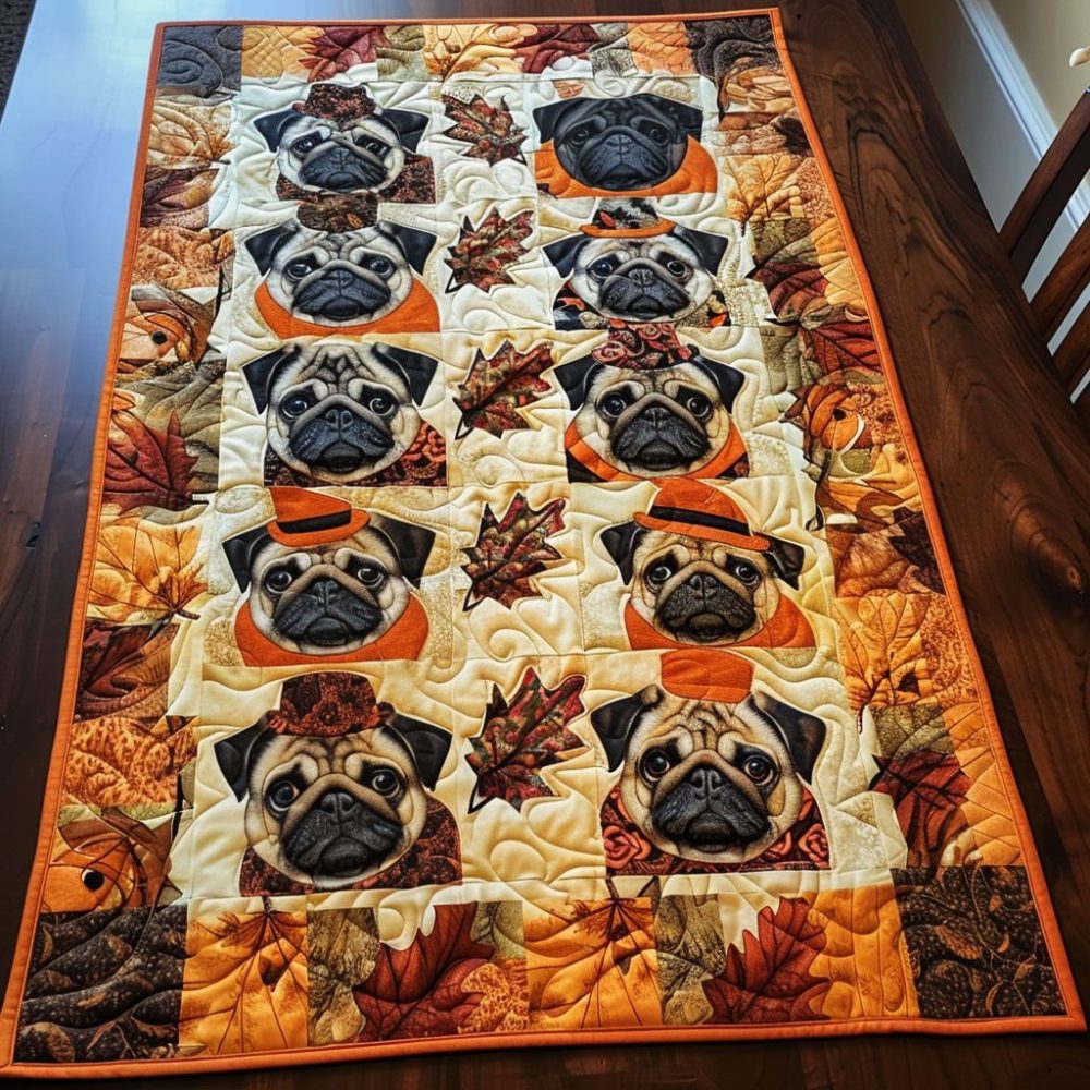 Autumn Pugs Quilted Table Runner