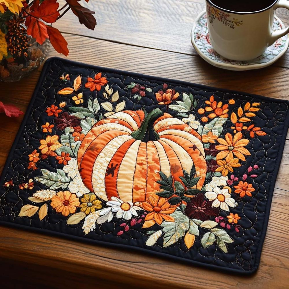 Autumn Pumpkin Patch Quilted Placemat — Harvest Table Accent, Insulated & Machine-Washable For Fall Gatherings, Thanksgiving-Ready Style