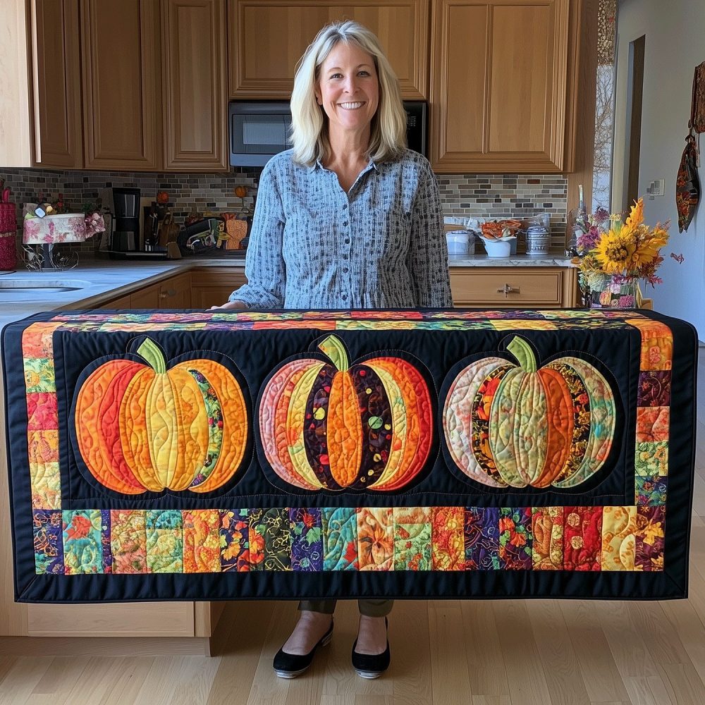 Autumn Pumpkins Quilted Table Runner