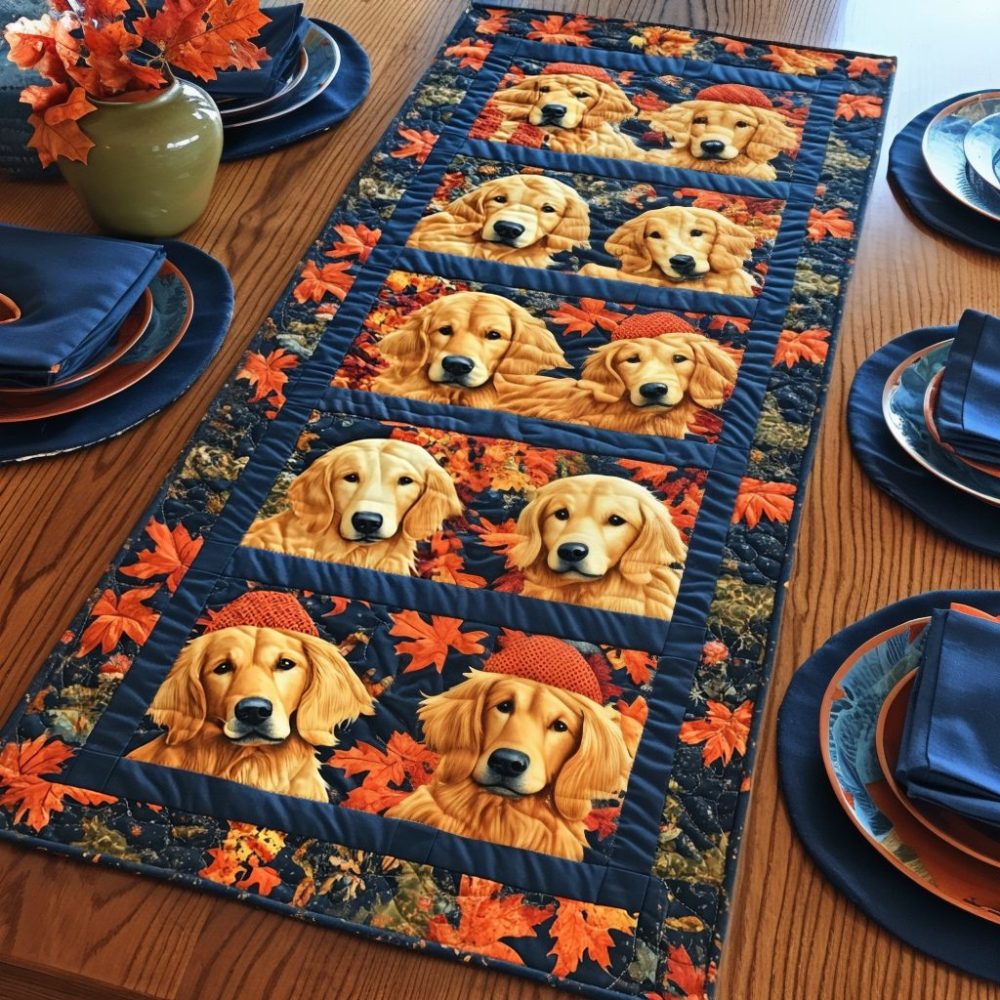 Autumn Retriever Path Quilted Table Runner