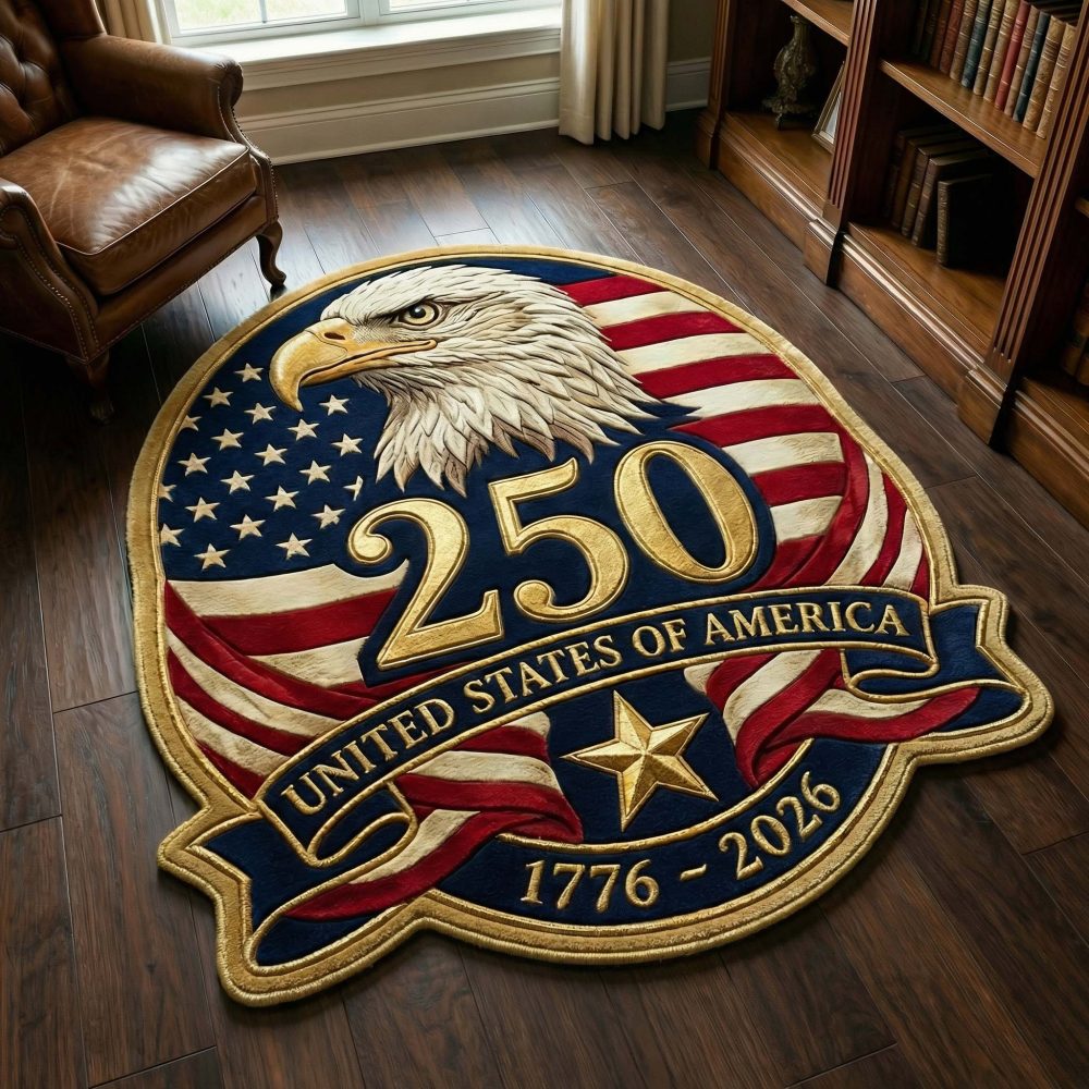 eagle rug,custom shape rug,patriotic rug,banner eagle rug,entryway accent rug,non-slip decorative rug,durable custom-cut rug,office rug