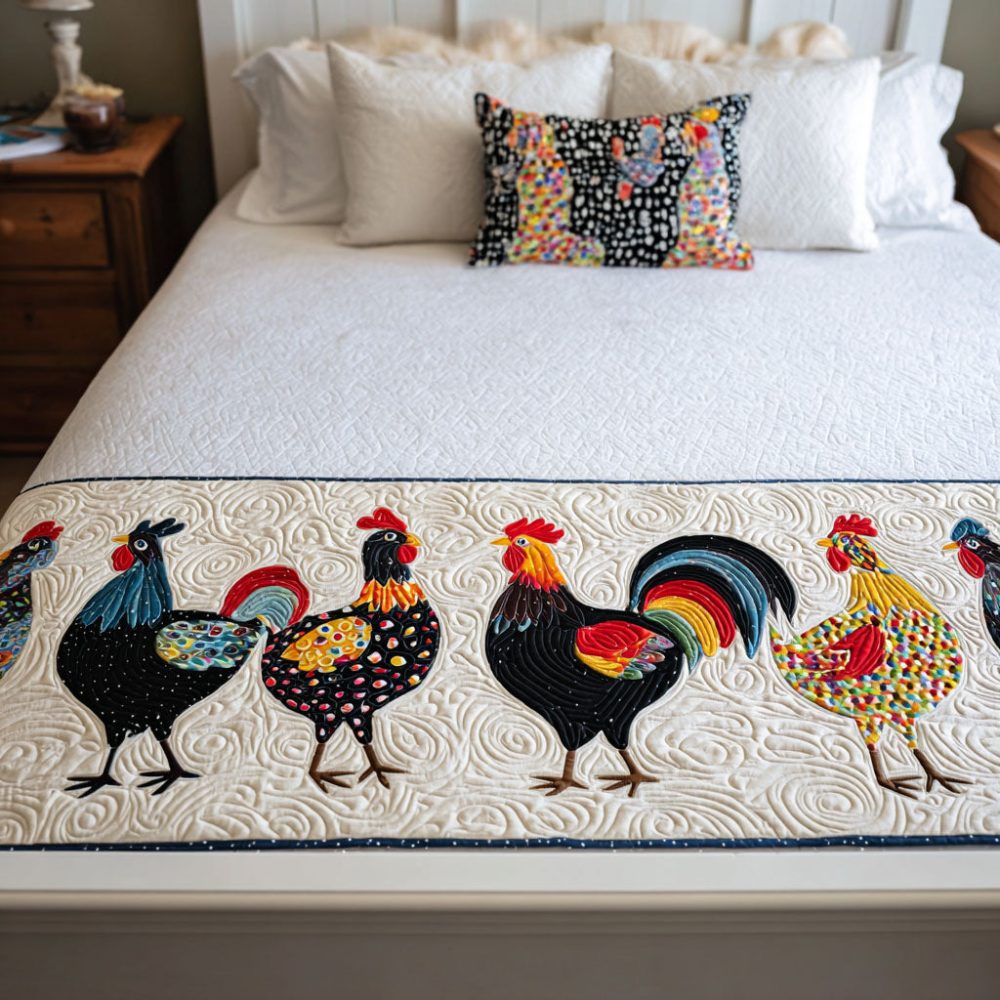 quilted bed runner,farm animal bed scarf,barnyard decor,barnyard blessings runner,cozy quilted bed scarf,country home accent,durable machine washable,decorative bedding