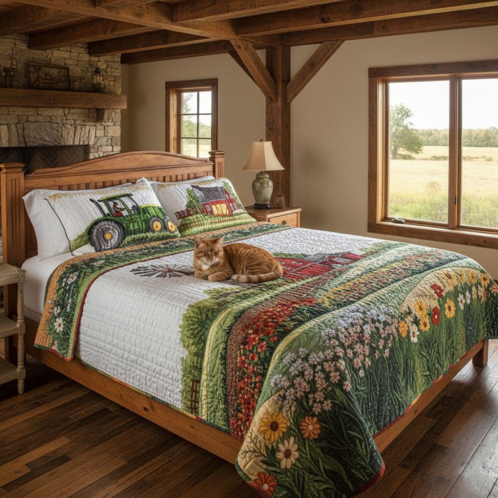 Barnyard Blossom 3-Piece Quilted Bedding Set