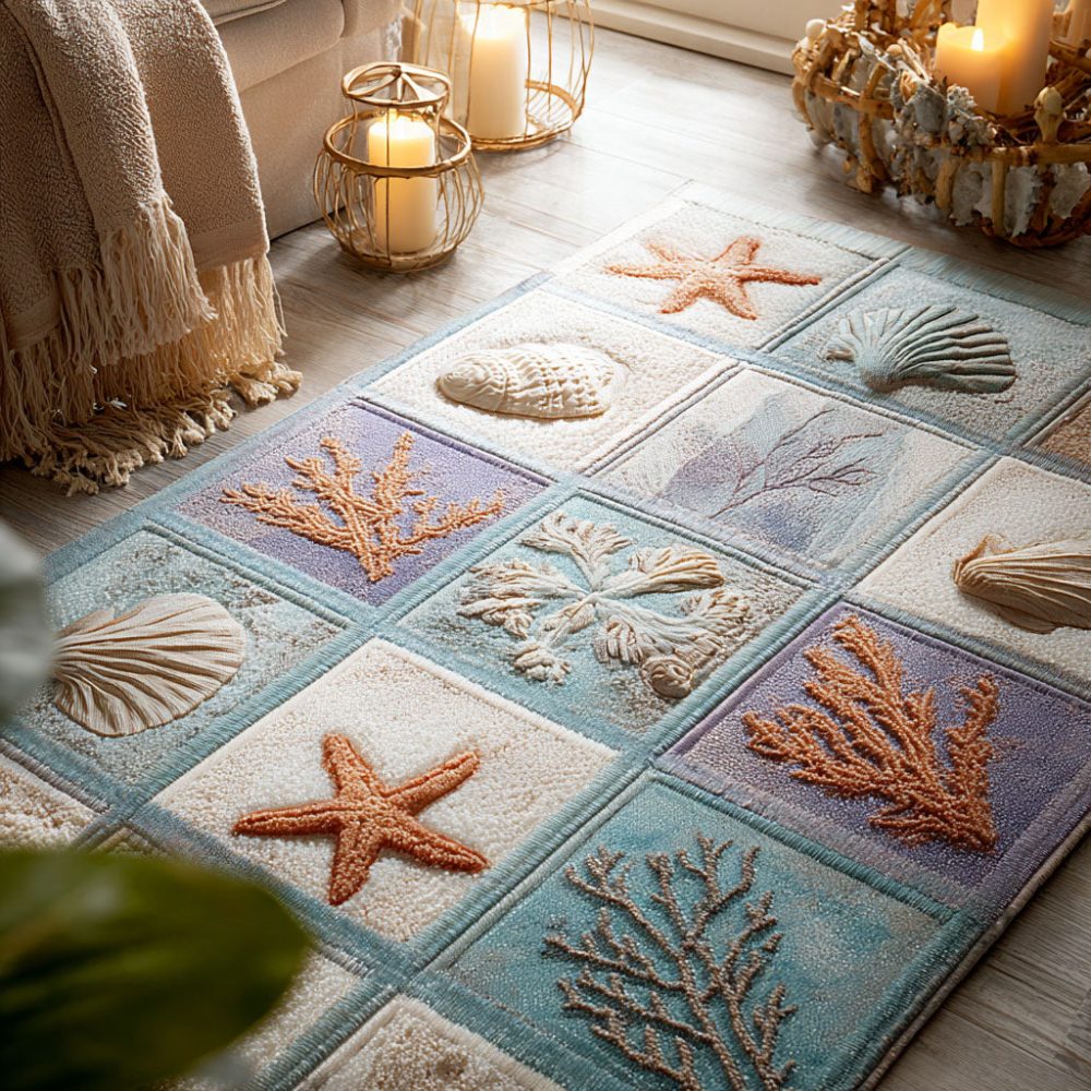 Beach Relics Nautical Area Rug — Coastal Home Accent Rug For Beach House, Durable Low-Profile Floor Covering For Living Room & Patio