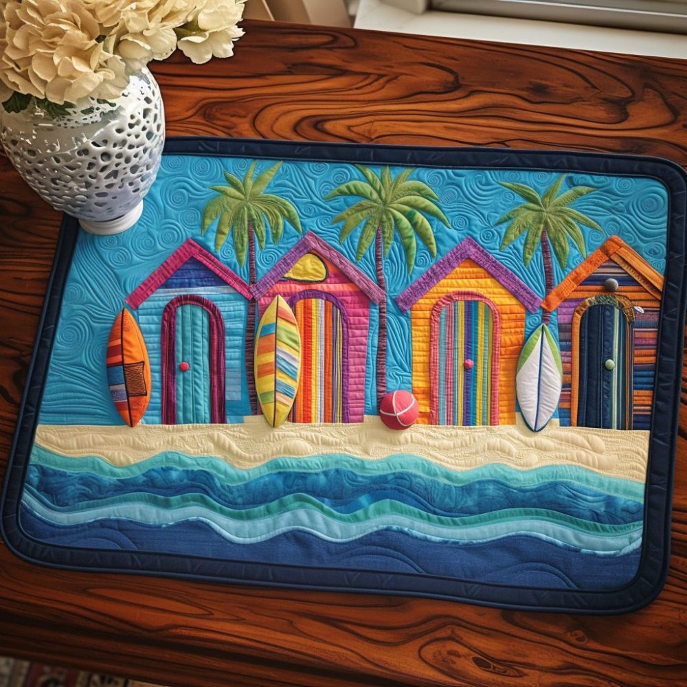 beach placemat,coastal quilted placemat,nautical table decor,summer table mat,beachside table accent,quilted dining mat,coastal dining accessory