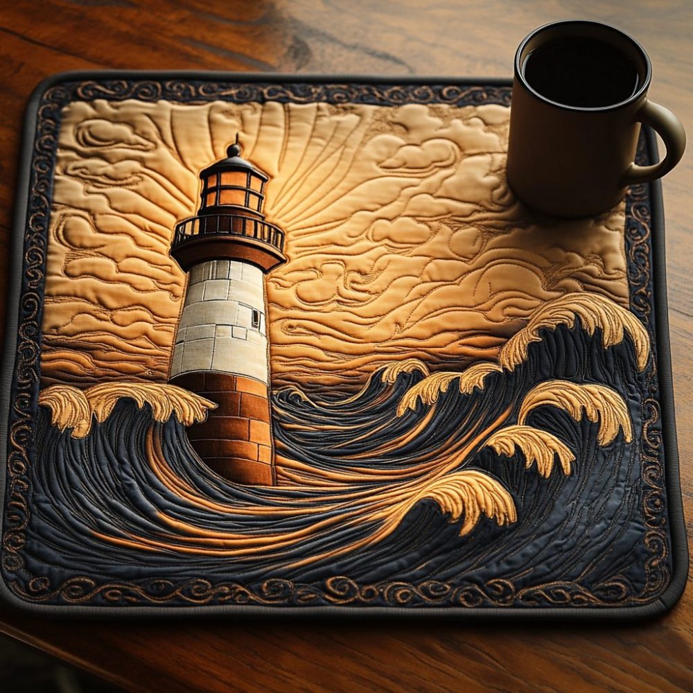 beacon placemat,lighthouse placemat,quilted coastal mat,cotton table placemat,nautical home decor,coastal dining mat,giftable placemat,machine washable