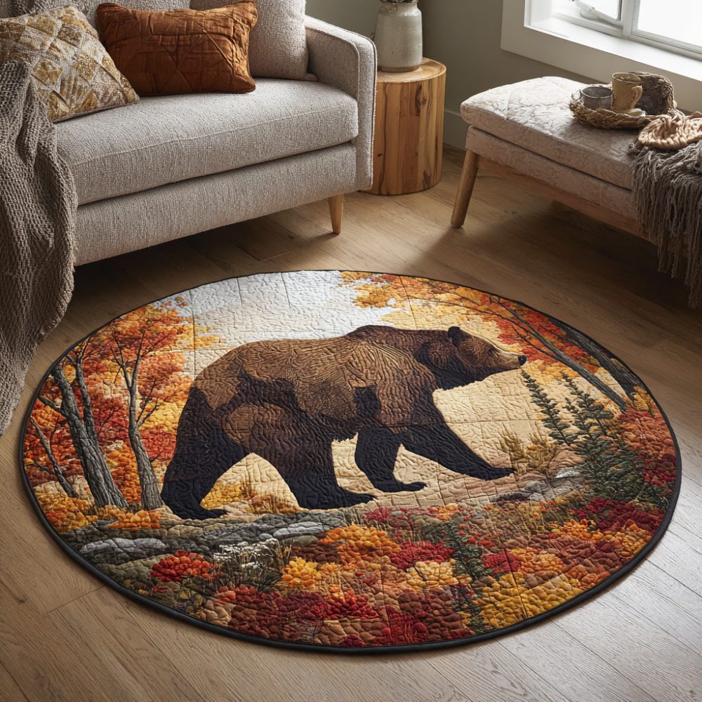 Bear Autumn Woods Quilted Round Mat
