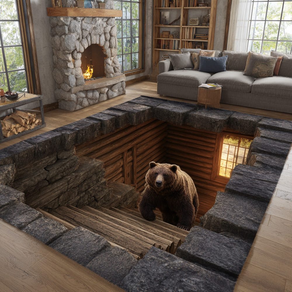 Bear Cavern Area Rug — Rustic Wildlife Accent Rug For Cabin, Living Room & Entryway; Durable Lodge-Style Floor Covering With Natural Tones