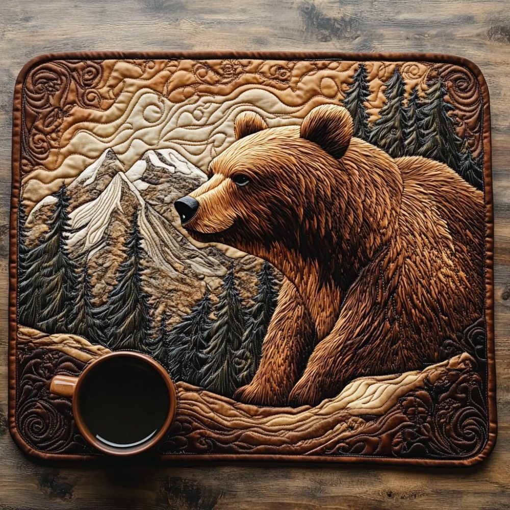 bear placemat,woodland placemat,quilted placemat,cabin table mat,cotton placemat,heat resistant placemat,machine washable