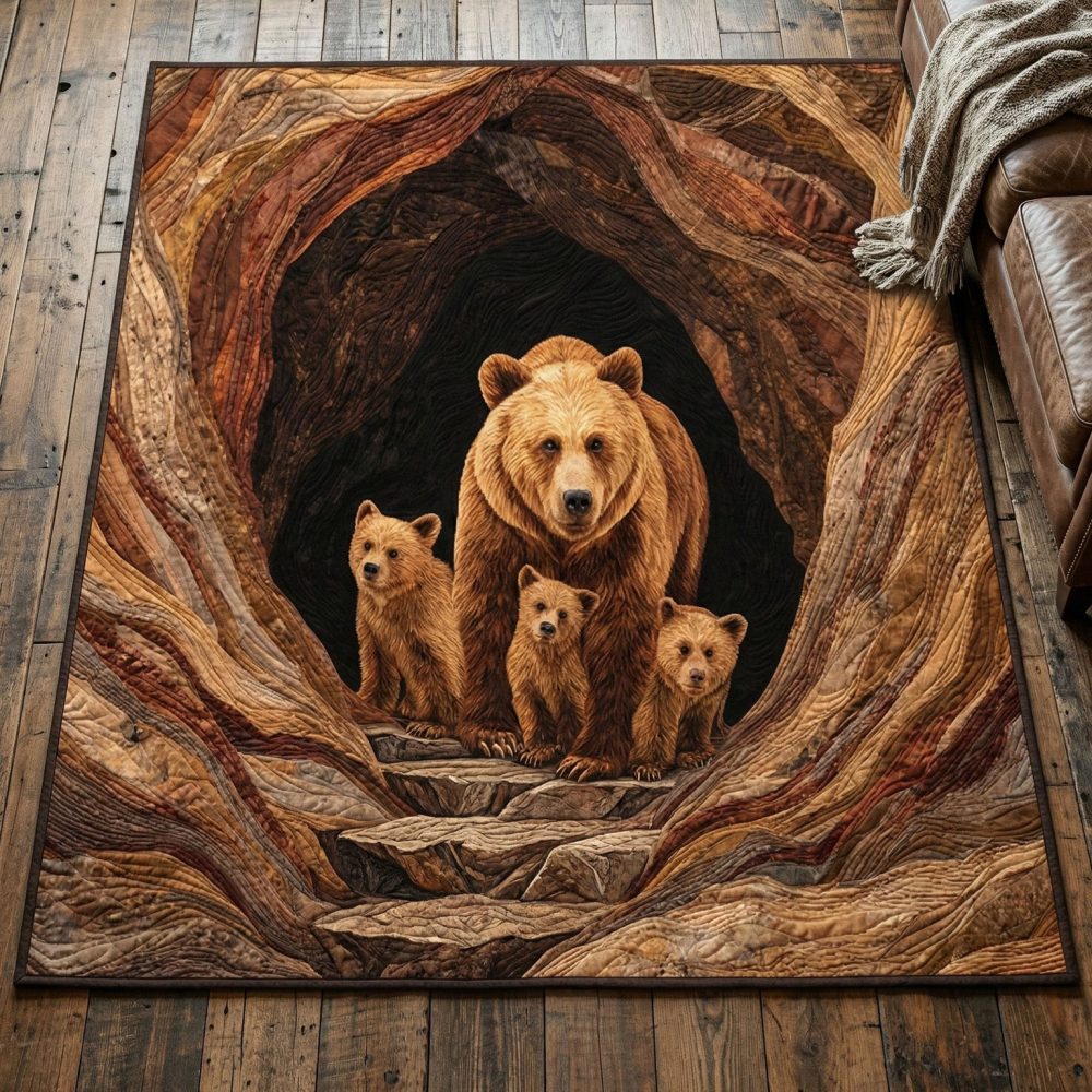 Bear Family Den Area Rug — Rustic Cabin Accent Rug With Bear Motif For Living Room, Den & Kids Space; Durable, Cozy Floor Covering
