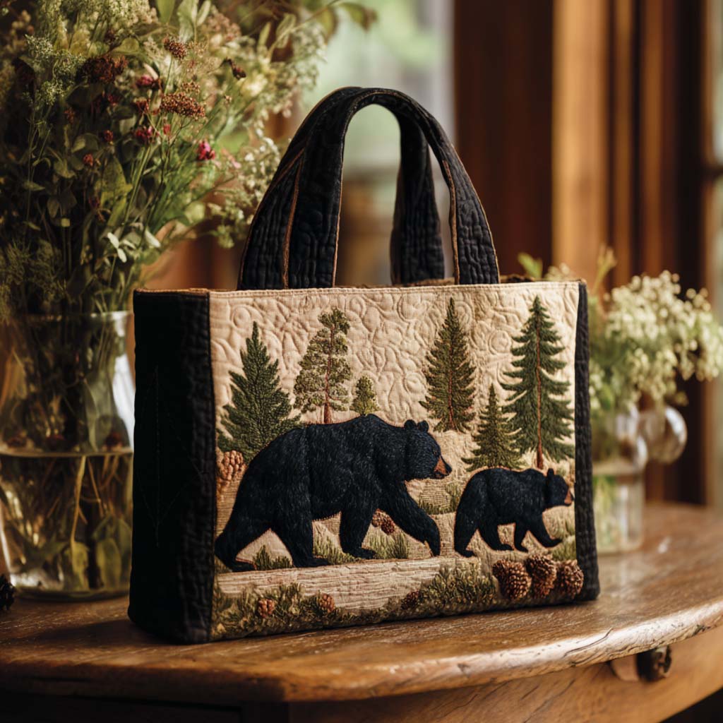 Bear Family Journey Quilted Tote Bag