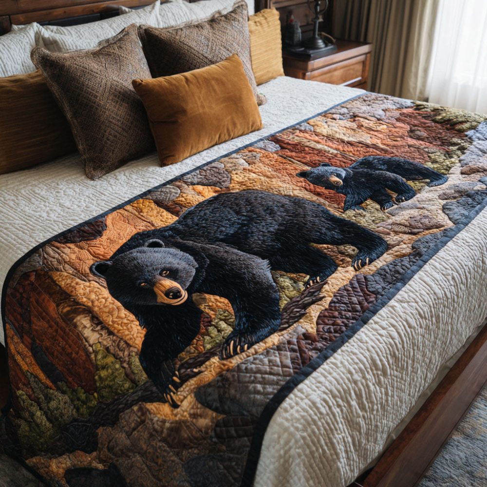 Bear Journey Quilted Bed Scarf — Adventure-Inspired Wildlife Bed Runner Accent, Reversible Cotton-Blend Throw For Rustic & Cabin Bedrooms, Easy Care