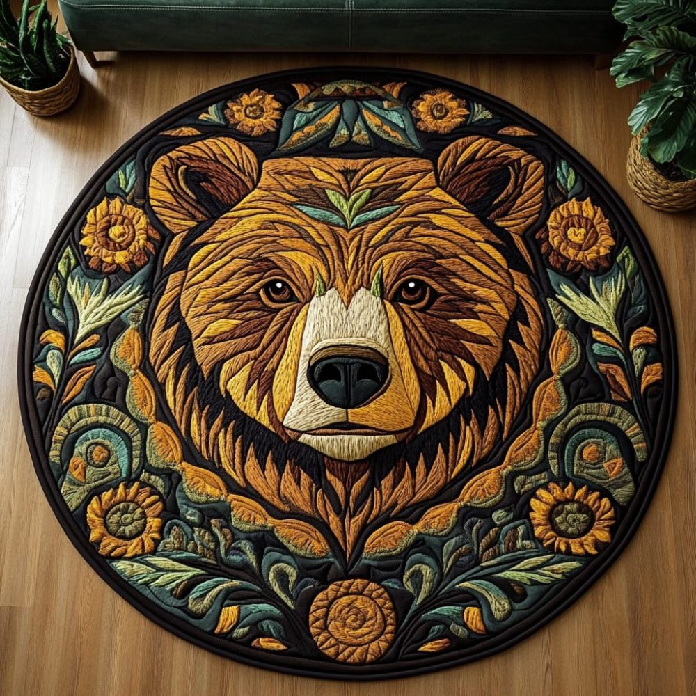 Bear Wilderness Quilted Round Mat