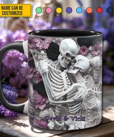 - High quality ceramic mug with two-tone rim, interior, & handle
