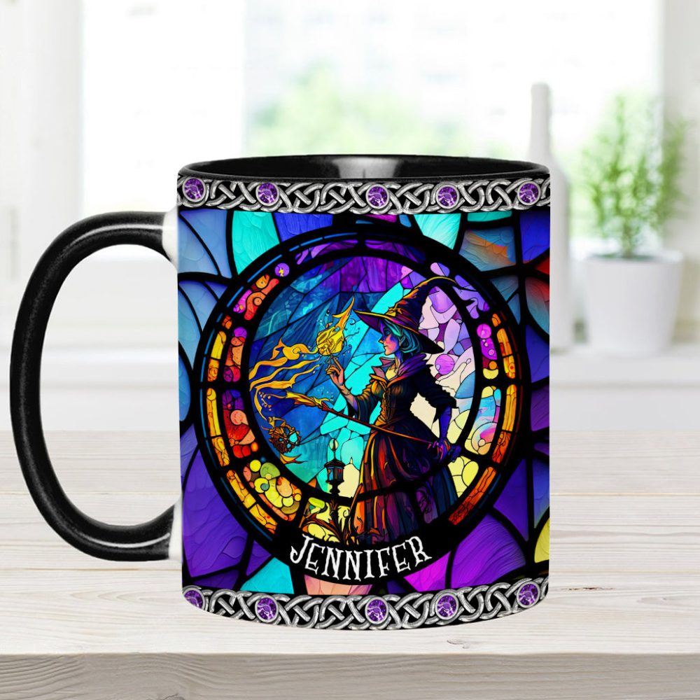Beautiful Stained Glass Witch – Personalized Witch Accent Mug