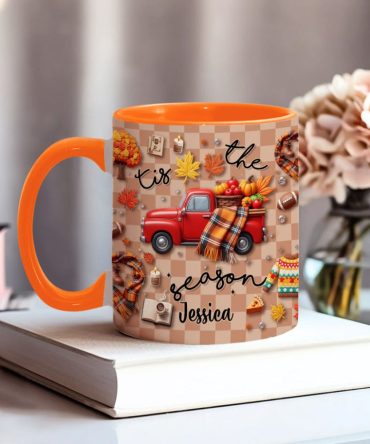 - High quality ceramic mug with two-tone rim, interior, & handle