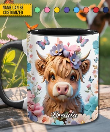 - High quality ceramic mug with two-tone rim, interior, & handle