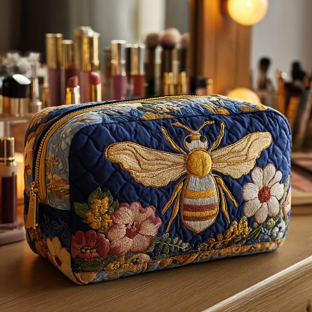 Bee Blossom Quilted Makeup Bag