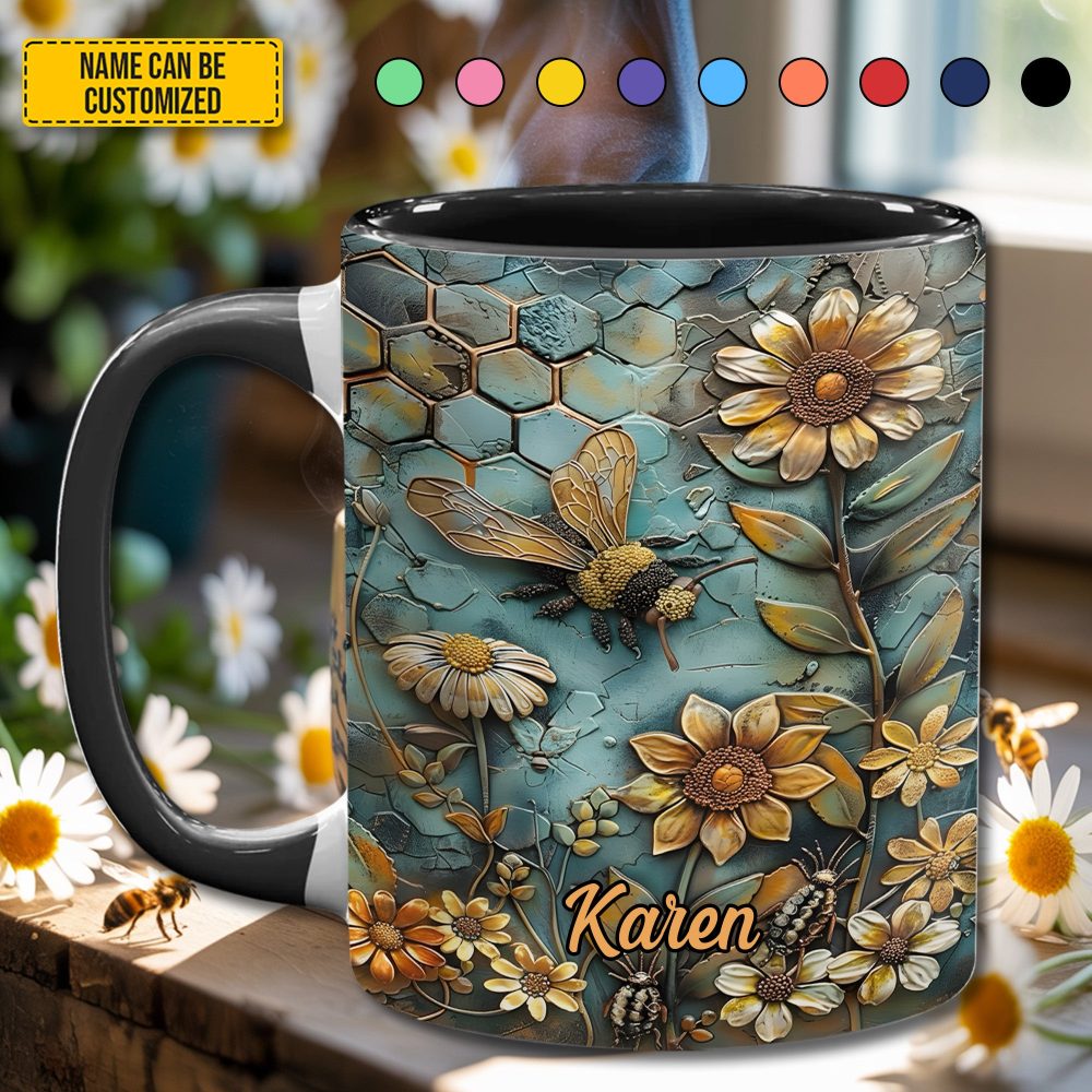 - High quality ceramic mug with two-tone rim, interior, & handle